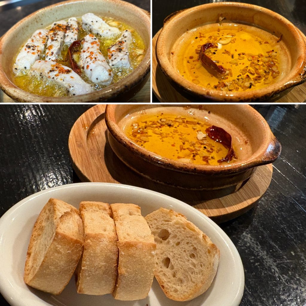 アヒージョは、残ったオイルとバゲットだけで最高のツマミです♫