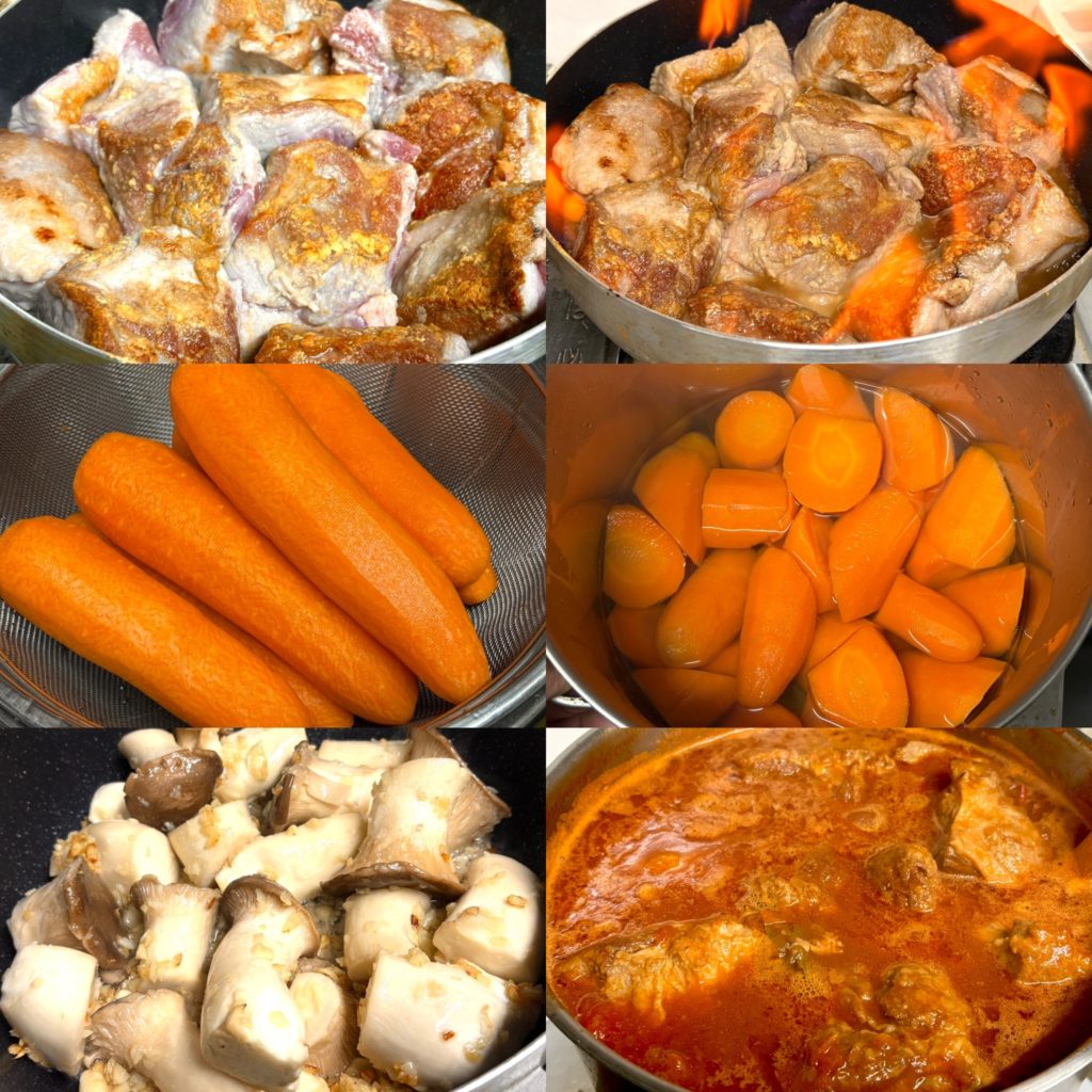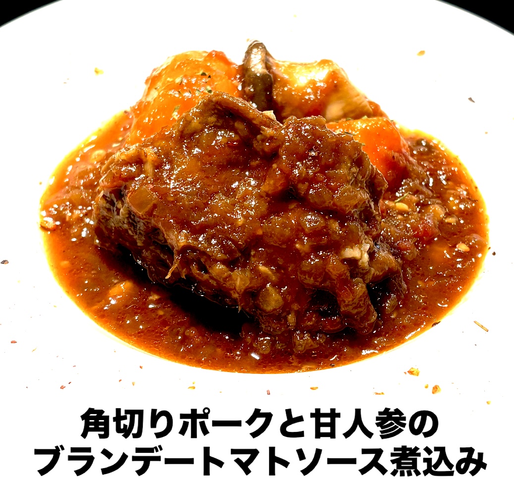 【角切りポークと甘人参のブランデートマトソース煮込み】