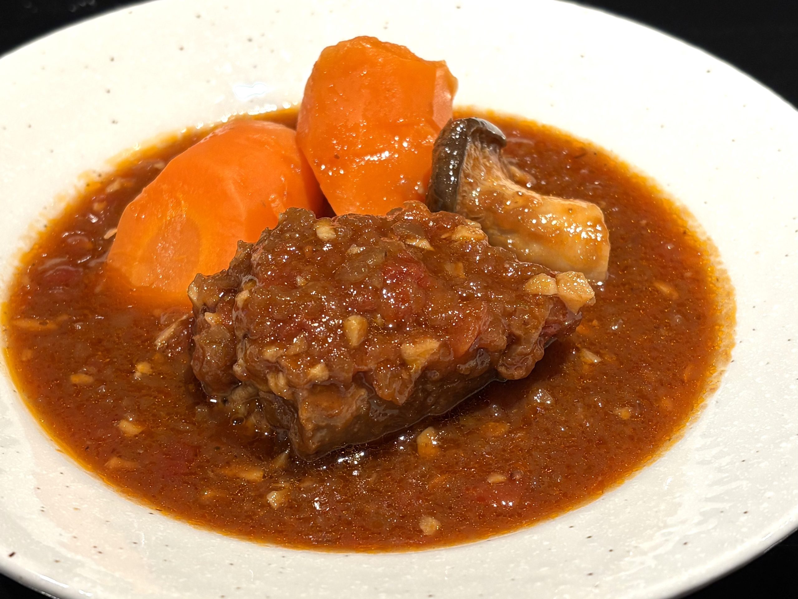 【角切ポークと甘人参のブランデートマトソース煮込み】