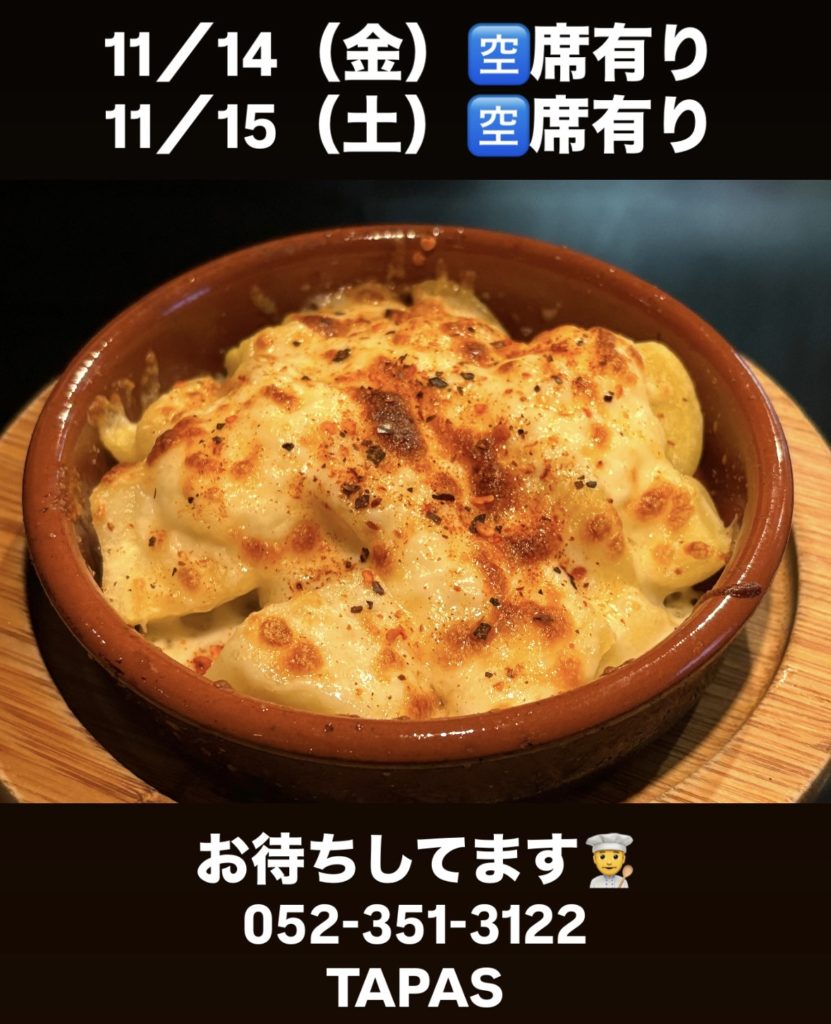 🈳席情報 2025年11月13日 最終更新日時 : 2025年11月13日 TAPAS料理長 金・土 お席空いてます🙆♂️ ご来店お待ちしてます☆ 投稿者プロフィール TAPAS料理長 最新の投稿 料理2026.02.282月28日(土) 料理2026.02.26黒ビーフカリー 料理2026.02.25人気です 料理2026.02.24春のオードブル